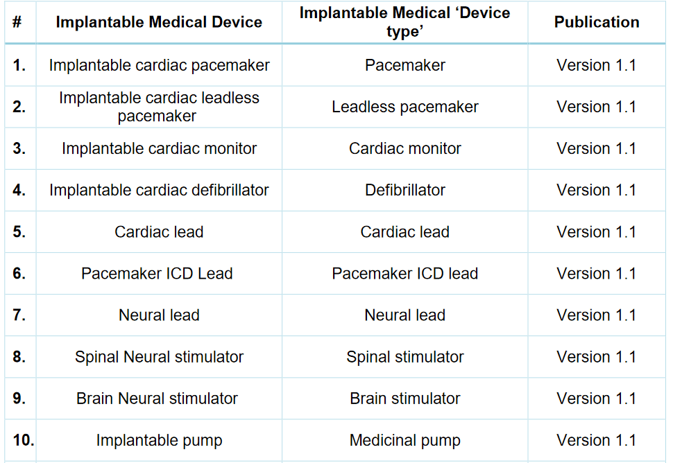Currently, the Guidance includes 88 ”device types”, subject to further updates. Below, an extract of the first 10 entries.